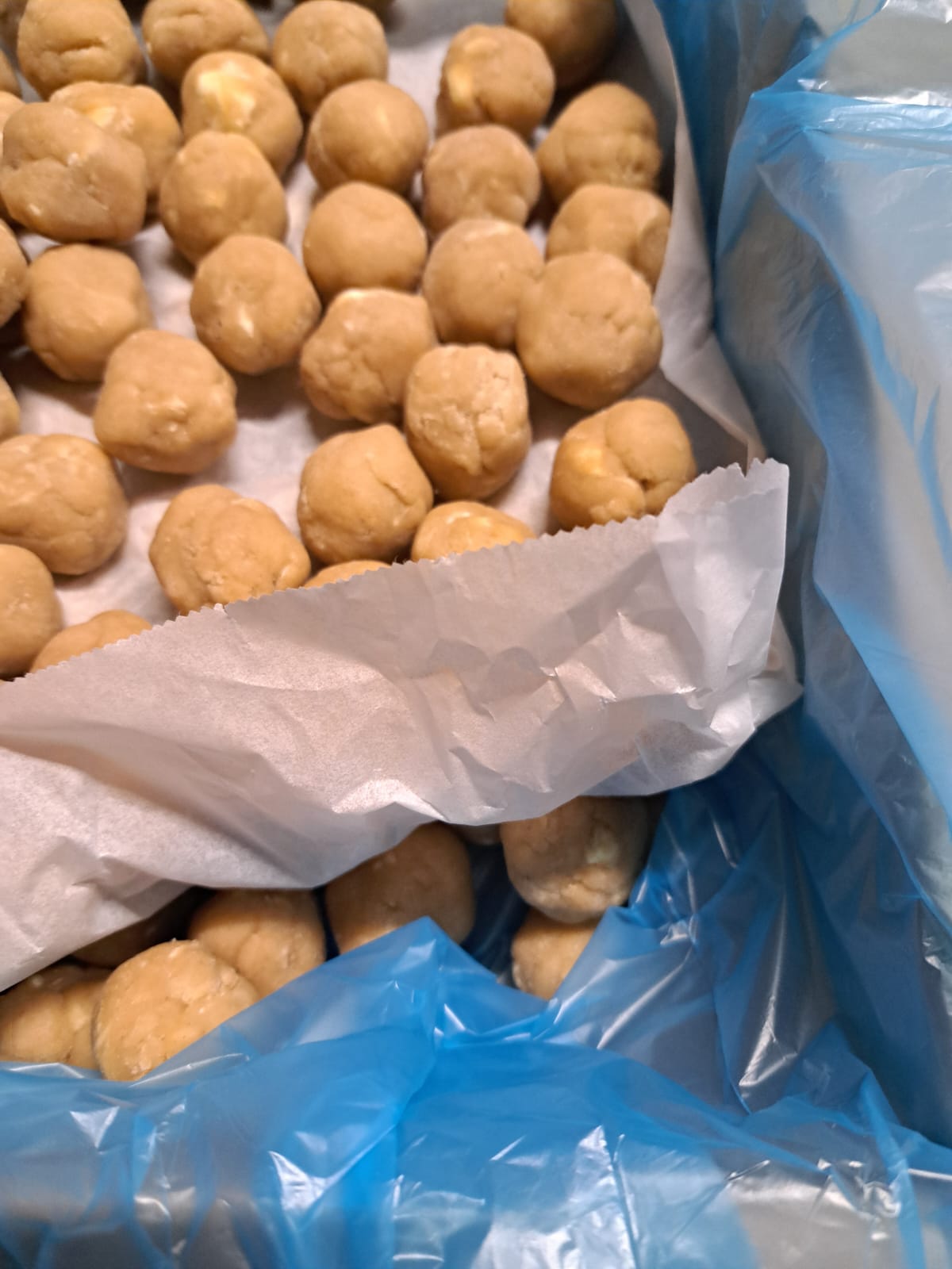 American coockie deeg in balletjes van 20gr, diepvries, klaar om afgebakken te worden